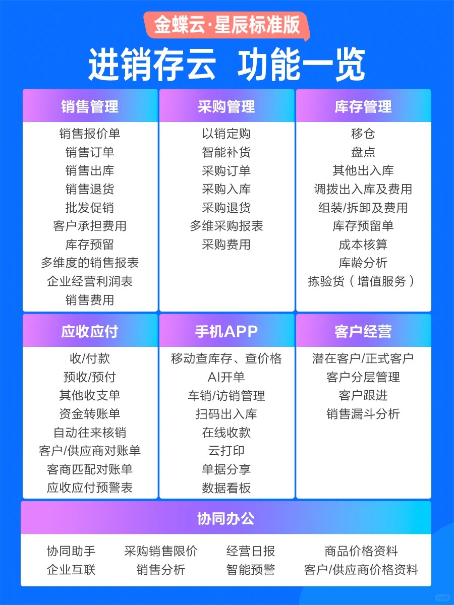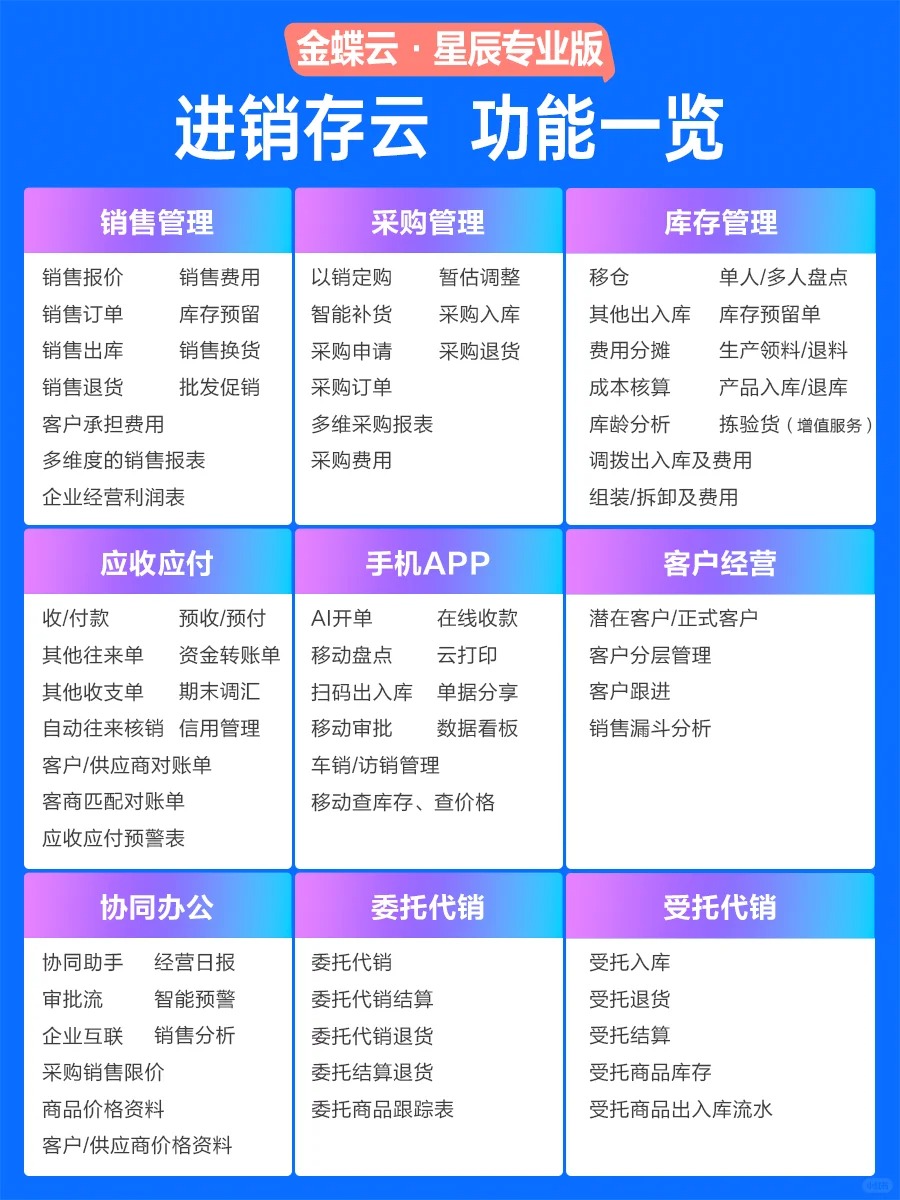 面向初創(chuàng)及中小微企業(yè)的標(biāo)準(zhǔn)版,以 “輕量化、低成本” 為主要,覆蓋基礎(chǔ)進(jìn)銷(xiāo)存(銷(xiāo)售報(bào)價(jià)、智能補(bǔ)貨、庫(kù)存盤(pán)點(diǎn))與財(cái)稅(憑證管理、報(bào)表生成、發(fā)票開(kāi)具、智能報(bào)稅)場(chǎng)景,配套手機(jī) APP 的 AI 開(kāi)單、掃碼出入庫(kù)、移動(dòng)查庫(kù)存等工具。