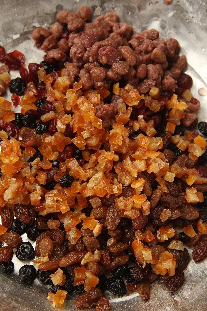 2. 將水果類一起倒入朗姆酒浸泡一個(gè)小時(shí)。