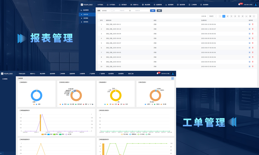 工單管理覆蓋工單創(chuàng)建、分配、處理、關(guān)閉全生命周期,支持告警自動(dòng)/手動(dòng)生成工單及工單超時(shí)、關(guān)閉提醒;報(bào)表管理采用模板化設(shè)計(jì),可根據(jù)不同模板定時(shí)生成報(bào)表,也可自定義報(bào)表,滿足不同管理統(tǒng)計(jì)需求。